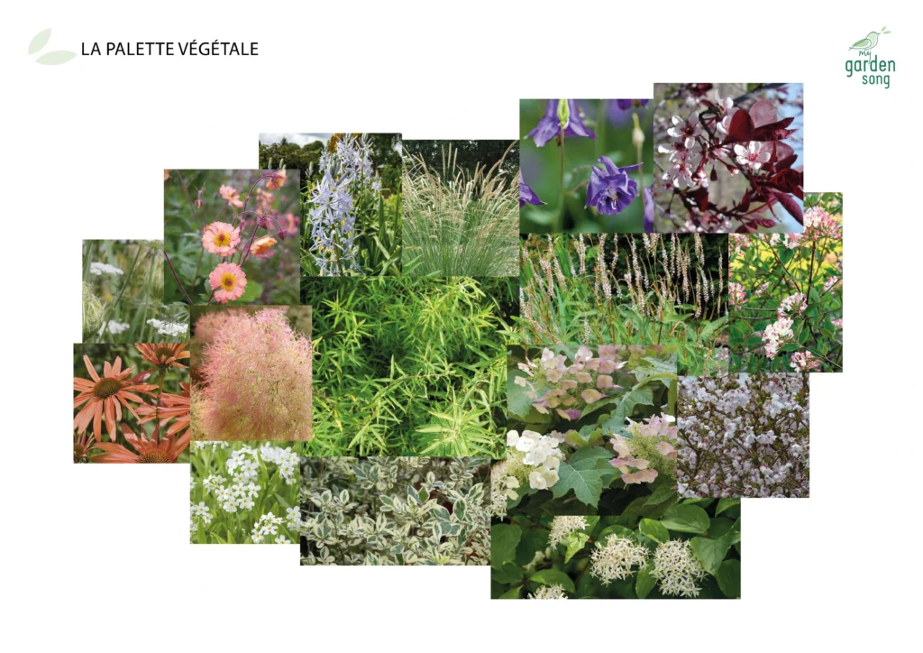 Le jardin prend ainsi une allure champêtre et foisonnante. Les matériaux et les végétaux se répondent dans une harmonie de teintes douces et chaleureuses, pour créer un espace vivant, accueillant et propice à la contemplation.